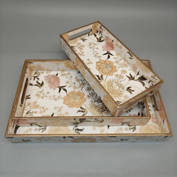 A handcrafted MDF wooden tray set featuring premium enamel artwork and elegant gold detailing — designed ...