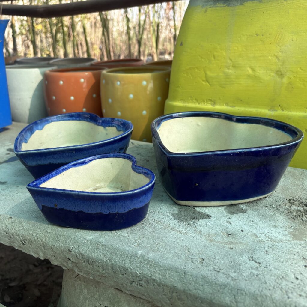 A charming heart-shaped ceramic planter featuring a glossy cobalt blue exterior and soft green interior. Designed ...
