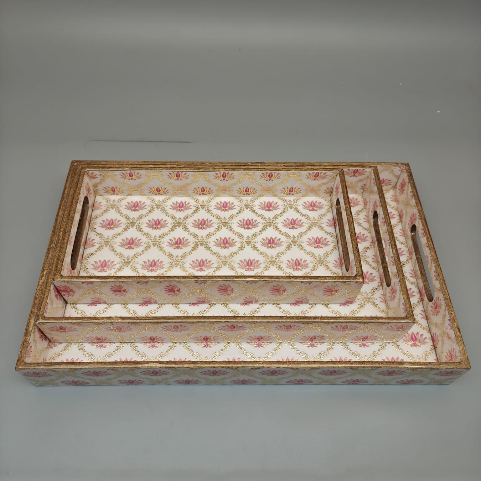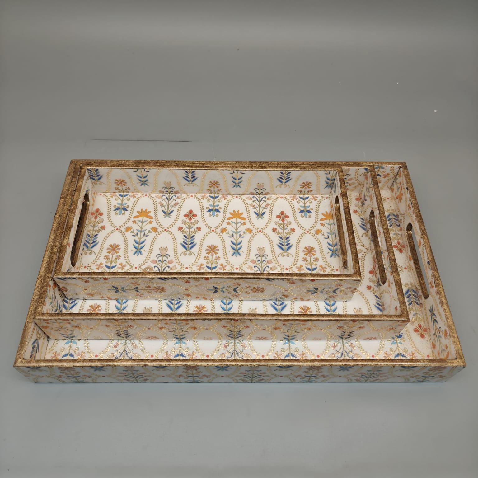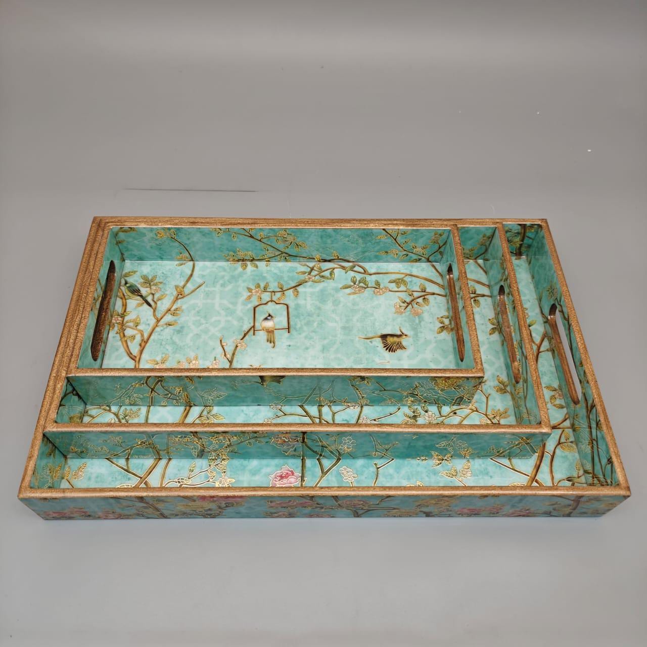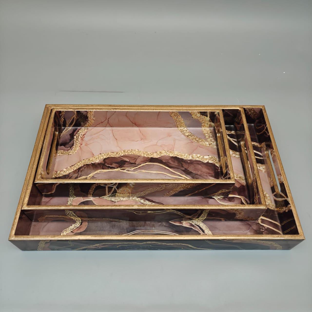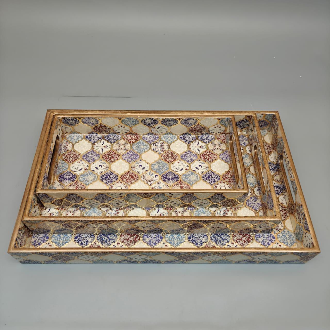 Each tray showcases intricate patterns, rich colors, and subtle gold accents that add a refined charm to your dining table, coffee setup, or festive décor. The sturdy structure and smooth polished surface make them ideal for serving beverages, snacks, or displaying decorative pieces.